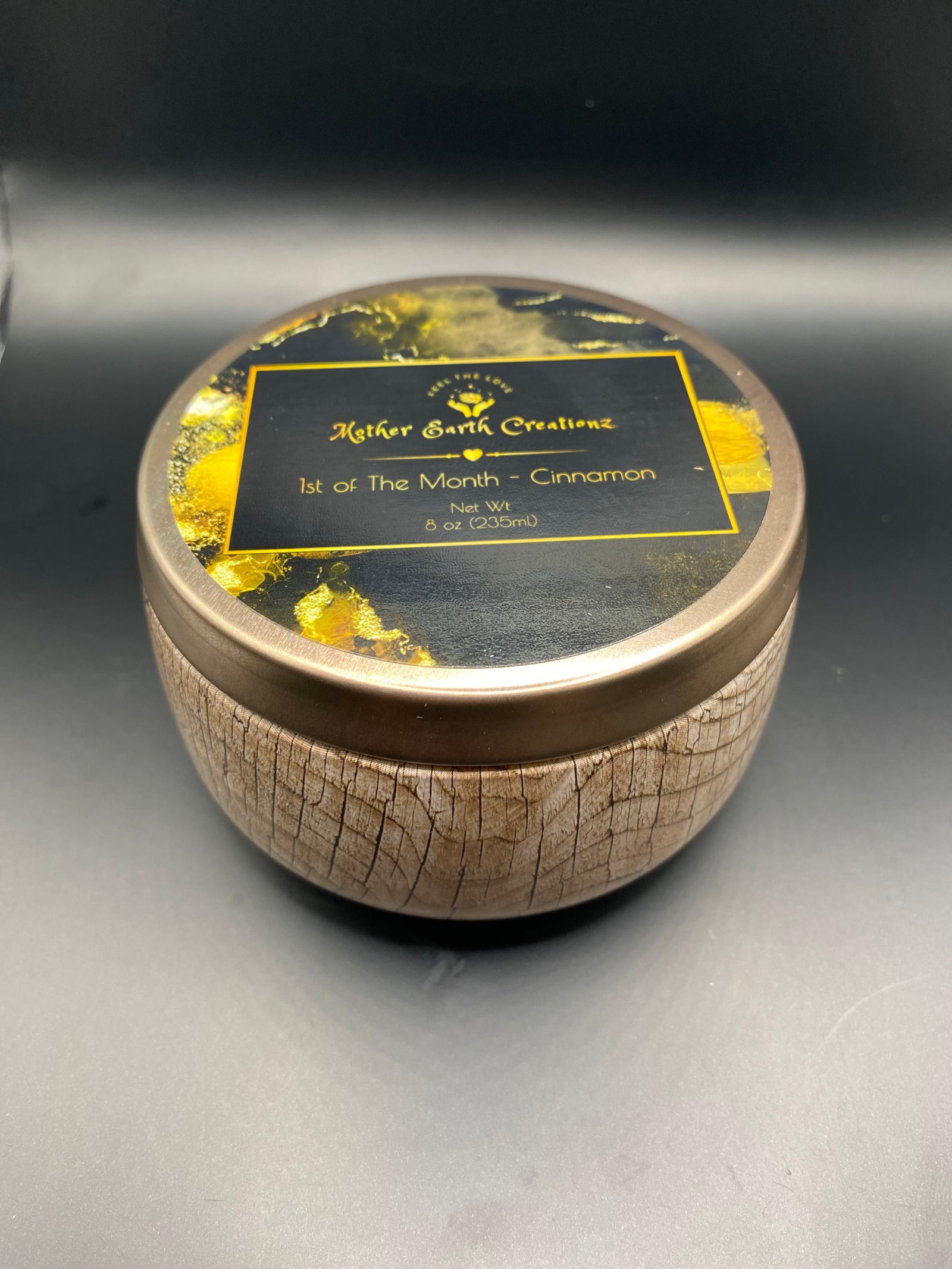 Mother Earth Creationz 1st of the Month - Cinnamon candle is a unique and handcrafted product designed to bring wealth and abundance into your home. This candle is made with high-quality essential oils derived from cinnamon, which offer a warm and inviting aroma to promote prosperity and abundance. Real cinnamon pieces and cinnamon powder are also infused into the candle to provide a natural and visually appealing touch.