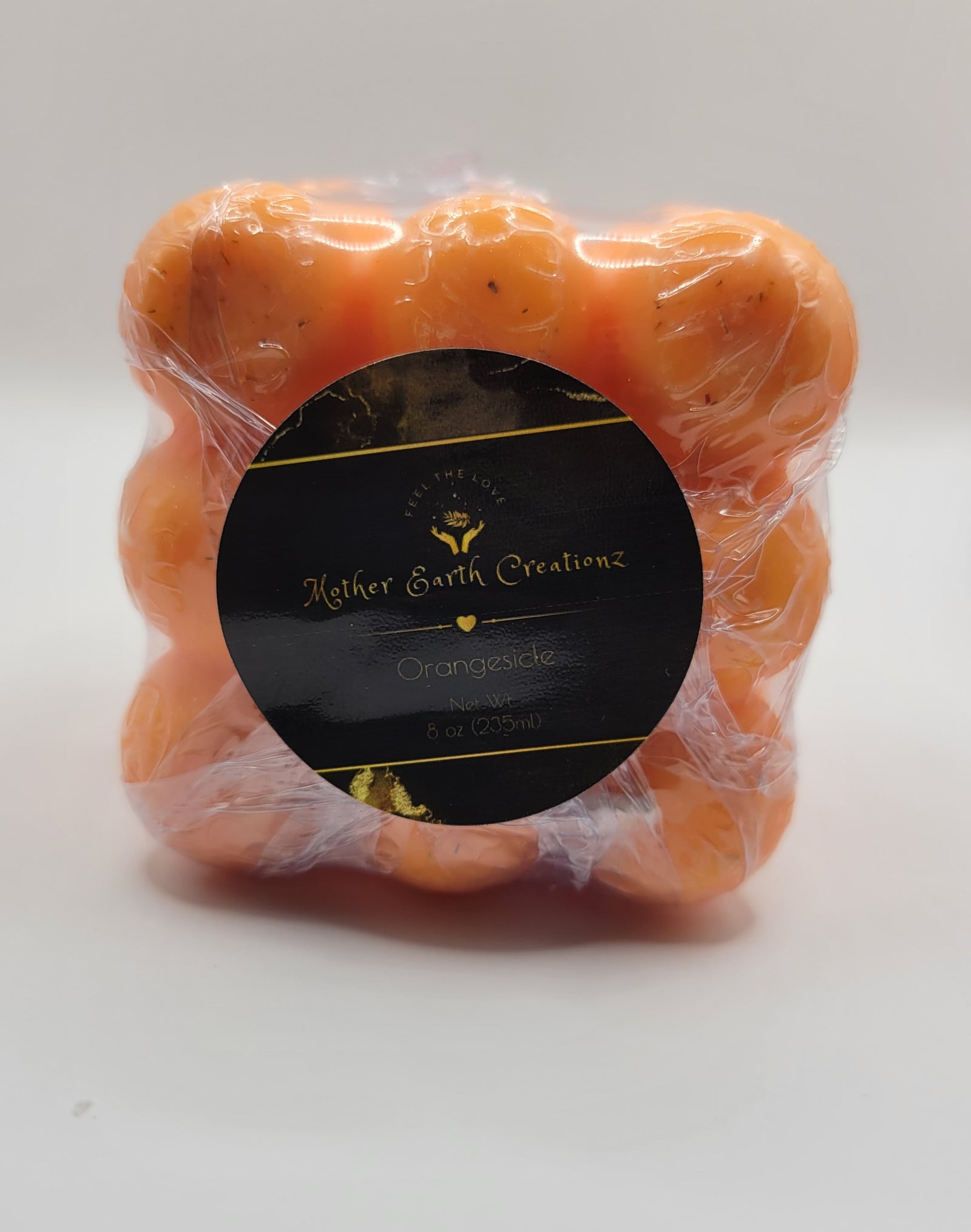 Mother Earth Creationz presents our Orangesicle candle, a handcrafted creation charged with the goodness of orange marigold petals, essential oils, and chamomile herbs to help you enjoy a peaceful and restful night of sleep.